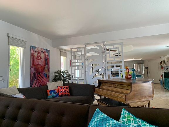 This Palm Springs gem provides optimal indoor-outdoor living with beautiful mountain views. Three ensuite bedrooms, each with outdoor access. Two sizeable master bedrooms on opposite sides of the home with great separation of space, and both have access to the pool/spa. Enjoy the amazing mountain views from the very private pool or spa which were recently Pebble Tec coated and are fully automated. The guest room has access to a private backyard area as well as a detached art studio/office. The main living area is a very spacious open concept with the large kitchen. Preparing meals will be a breeze with the substantial island, expansive granite counter tops, and all stainless-steel appliances. You may want to grill your meal while enjoying a beverage poolside. The grill is connected to the house gas and is right next to the poolside bar. The home provides ample storage as well as a three-car garage. Plenty of off-street parking for guests on the circular driveway. The corner lot is just under a third of an acre, on fee simple land (NO land lease). This beautiful home is located in an incredibly quiet neighborhood, just one mile from the Uptown Design District and quick/easy access to the 10 freeway. This property has been a successful vacation rental. Refer to the city of Palm Springs for most current vacation rental rules and compliance requirements.