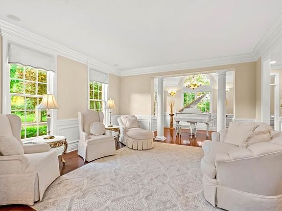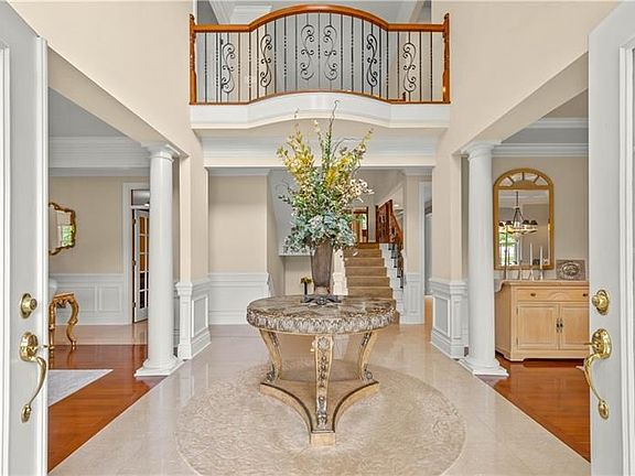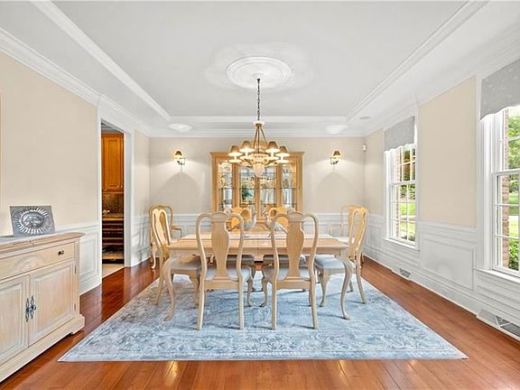 Breathtaking custom all brick home surrounded by wooded green space nestled at the end of a quiet cul-de-sac in Abbey Woods. Built by seasoned luxury homebuilder TD Kelly, the home features heavy crown molding, wainscoting, columns, high-end finishes and more. Elegance graces every room with highlights such as a barrel ceiling music room and 2-story marble floor entry with balcony above. Formal living and dining rooms in the front of the home give way to polished den, media room, family room, study and large kitchen in the rear. French doors open from you kitchen morning room to an exquisite patio and statement fireplace. Outdoor kitchen, grill, refrigerator, rotisserie creates the perfect entertaining venue. Walk down to fire pit secluded among mature trees in your fenced-in yard. Lower level boasts second kitchen, laundry, dining, family, office, workout, billiards, and custom wine room. Stairs to third floor attic Great location close major interstates Seneca Valley School District.