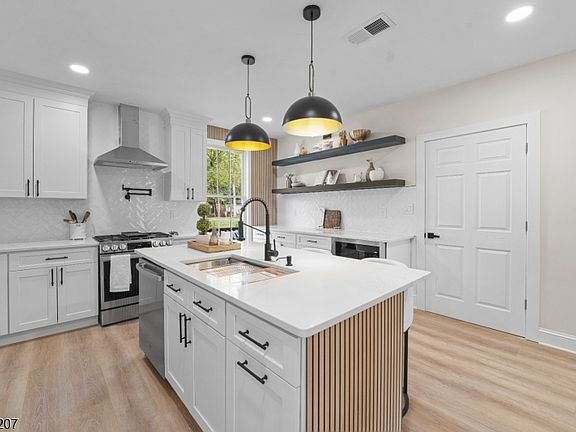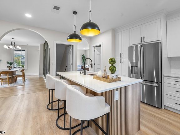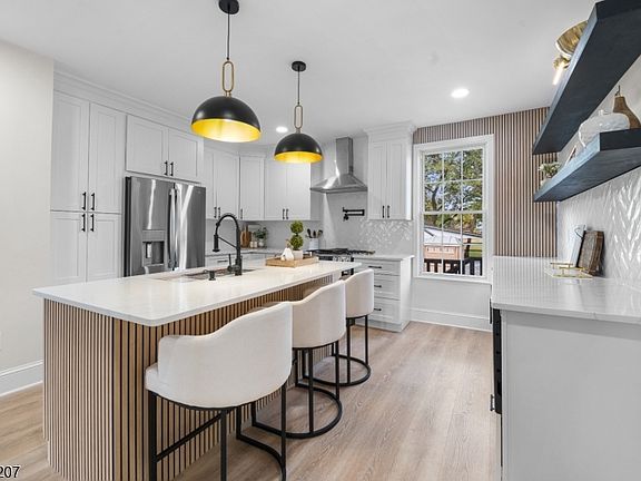 Welcome to your new home! This beautifully renovated 3-bedroom, 2-bathroom single-family home combines modern upgrades with everyday comfort. Step inside to a brand-new kitchen with quartz countertops, new cabinets, pot filler, and premium GE appliances including a 5-burner range, microwave, and dishwasher. The eat-in kitchen with wet bar is ideal for entertaining. The inviting living room features a new electric fireplace, while the washer and dryer room/mud room adds convenience and connects directly to the backyard deck. Waterproof luxury vinyl on the first floor and refinished hardwood upstairs bring both style and durability.Enjoy the outdoors on the 49x150 lot with a spacious backyard, a deck perfect for gatherings and barbecues, and a welcoming front porch for morning coffee or quiet evenings. An unfinished basement and attic provide storage or future potential. Parking is never a problem with a garage and driveway for 5+ cars. Major updates include a new roof, siding, and garage door, along with central AC and heat throughout the home for year-round comfort.Conveniently located within walking distance to Hackettstown High School and Middle School, and just minutes to Rock Ridge Golf Course, shopping, and dining.