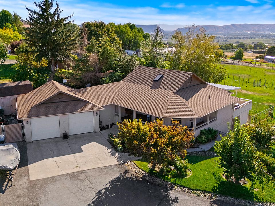 Welcome to this extraordinary 5-bedroom, 3-bathroom home sprawling across 3,700 square feet, set on a nearly 2-acre lot. Imagine waking up each morning to awe-inspiring panoramic views of Mt. Adams, Mt. Rainier, and Yakima as a whole. Views that extend from your deck off the main living areas and the primary bedroom. This home is designed for ultimate versatility and comfort, making it ideal for multi-generational living. Each level features its own fully equipped kitchen, bedrooms, bathrooms, and expansive living areas, offering privacy and independence while keeping loved ones close. The open-concept design on the main floor creates a seamless flow between the kitchen, dining, and living spaces, making it perfect for entertaining. The large kitchen, complete with generous cabinetry and countertops, providing ample room for preparing meals, socializing with friends, or waking and enjoying breakfast with those that matter most. The adjacent living room features a cozy fireplace that anchors the space, inviting you to relax at the end of the day as you enjoy the views. A large primary bedroom with its own ensuite and walk-in closet resides on the main level, along with a secondary bedroom. And downstairs you will find 3 more bedrooms and another room perfect for an office or gym. The 5th bedroom downstairs is non-conforming without a window but is very spacious and would make for a great media room as well. Step outside to discover the perfect blend of natural beauty and practical living. The sprawling lot includes a fenced pasture, ideal for those with animals. With abundant parking and dedicated space for your RV or boat, you'll have everything you need to live life on your terms. Whether you're hosting large gatherings or seeking quiet moments to yourself, the wrap around deck is perfect for maximizing those stunning vistas. This place is grand yet welcoming, it's a place that offers room to breathe, grow, and build lasting memories.