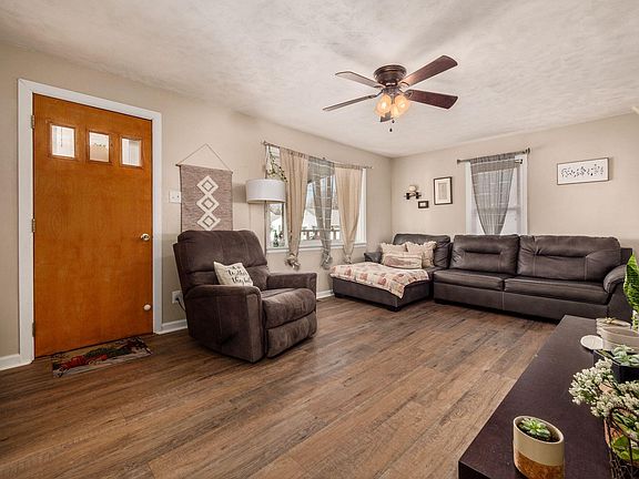 Charming 2 bedroom, 1 bathroom home located in the heart of Bellefontaine. Offering large living area, eat-in kitchen with electric range and refrigerator, and full basement for additional storage or living area. Enjoy your evenings in the large backyard with covered patio and fenced in yard. Shared driveway offering an oversized 1 car garage with workshop. Newer roof and LVP flooring in 2022. This home is awaiting a new owner, call today!
