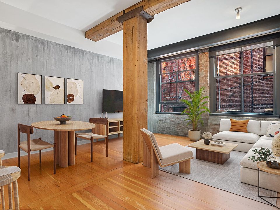 Timeless characterModern convenienceReclaimed hardwood floorsExposed brickWood beamsSoaring ceilingsOversized windows