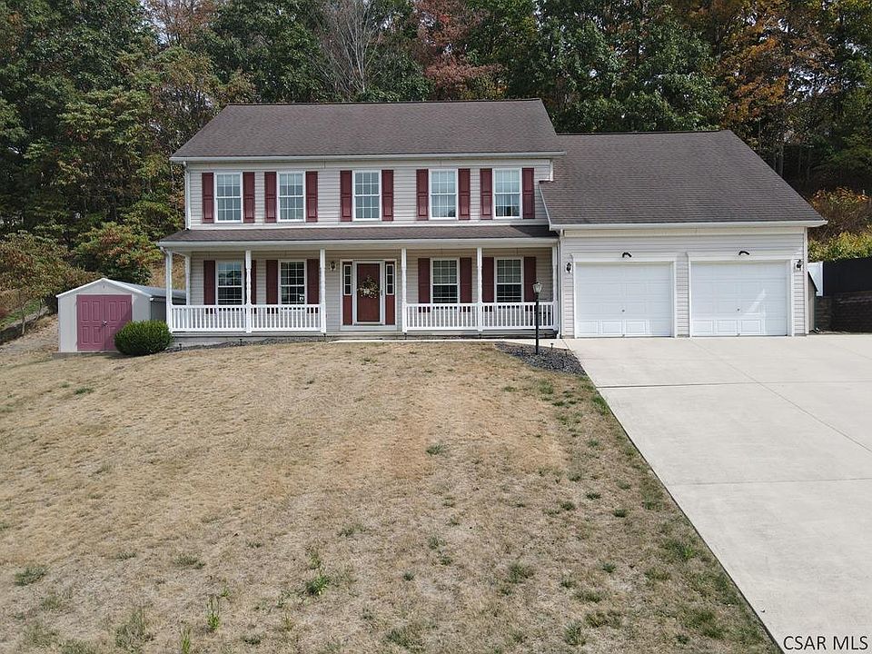 PRICE IMPROVED! Welcome home to this beautiful 4 bdrm, 3.5 bath home designed for both comfort and style. Step into the grand foyer with cathedral ceilings & an impressive open oak staircase that sets the tone for the rest of the home. The updated kitchen features granite countertops, a center island, abundant cabinetry, & ss appliances—all included. Just off the kitchen, the spacious family room invites you to relax with its vaulted ceilings & cozy gas brick fireplace. Upstairs, the primary suite boasts a walk-in closet & a private luxury bath complete with a garden tub and separate shower. The finished lower level offers even more living space, with 2 large unfinished areas that provide endless possibilities for expansion, storage, or hobbies. Enjoy the outdoors from your private rear deck or unwind on the welcoming front porch while taking in the breathtaking views. Addtl highlights include central air, all new 2022 windows, 2 car garage.