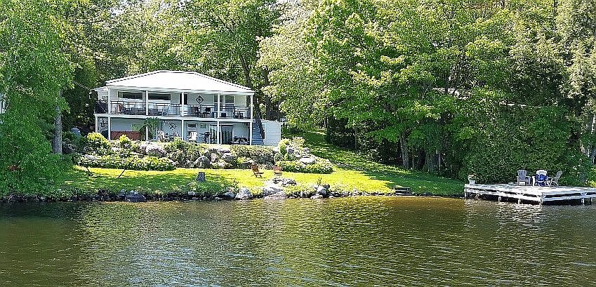 Year-round, lakefront home on pristine Messalonskee Lake. 115 ft.+- frontage, sandy beach, dock. Open concept main level, 10 rooms 4+bedrooms, 2 baths, 2556 sq. ft., great views. 2 car garage. Possible lower level in-law