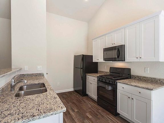 This single-story home offers a functional layout that you and your family will enjoy. The living room features wood-look flooring and a vaulted ceiling. The kitchen features included upgrades such as granite countertops and modern white cabinetry, recessed lighting and a complete suite of energy-efficient appliances, including the refrigerator and a glass top electric stove. The vaulted ceiling continues into the expansive master suite, which connects to a private bath and walk-in closet. Renter responsible for utilities, water and sewer, trash, internet, electricity and yard maintenance. Last month's rent due at signing. No smoking allowed.