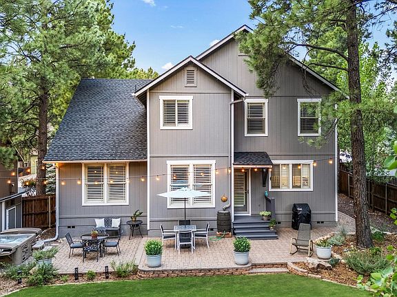 Welcome to a true gem in Ponderosa Trails that showcases craftsmanship and attention to detail at every turn. From the moment you arrive, you'll be greeted by a charming front porch and an inviting entryway that sets the tone for the warmth and elegance within. The main level features stunning real hickory hardwood flooring (installed in 2019), while the remodeled chef's kitchen offers sleek quartz countertops (2020), newer stainless steel appliances (2019), and a spacious walk-in pantry. The open-concept design seamlessly connects the kitchen, dining, and family rooms—perfect for entertaining and everyday living. Thoughtfully designed, this level also includes a dedicated mudroom/ laundry room, and a full guest suite. INQUIRE FOR MORE PICTURES & VIDEO FROM THE LISTING AGENT. Upstairs, the luxurious primary suite offers a private retreat with vaulted ceilings, a soaking tub, dual vanity, and one of the largest walk-in closets you'll find in Flagstaff. A versatile loft provides ample space for games, crafts, or a cozy reading nook, while two generously sized guest bedrooms complete this well-designed split floor plan. Step outside to a professionally landscaped backyard - an ideal space for relaxation and outdoor gatherings. Situated on a desirable south-facing lot with a spacious three-car garage, this exceptional home is a must-see! All furnishing and decor is available with the home (please inquire with the listing agent).