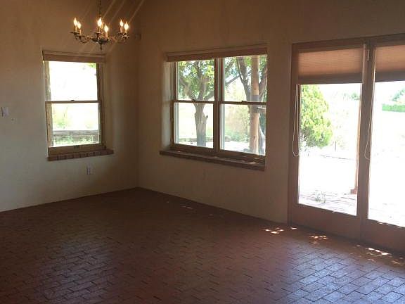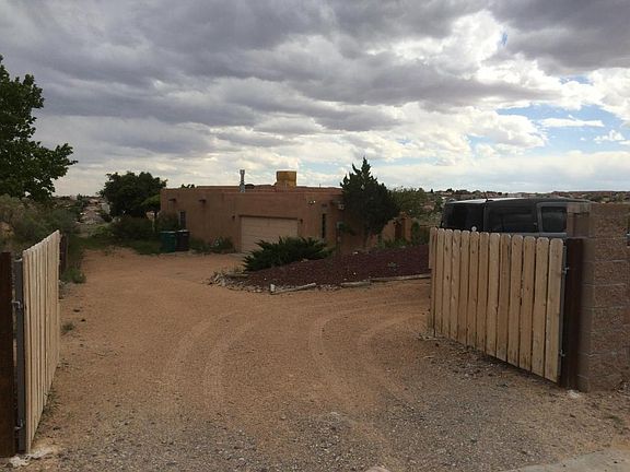 VIEWS!VIEWS!VIEWS! BACK ON THE MARKET!Fantastic custom adobe home on a half acre where Rio Rancho and Albuquerque meet! Close to two hospitals, 528, Intel, shopping and entertainment. Tongue in groove ceilings with vigas, brick floors with radiant heat and a custom kiva fireplace make this home warm and welcoming. Views of the city from the kitchen, dining and living rooms. Brick veranda with wisteria covered pergola for evening relaxation and watching the city lights come on. Master bedroom on one side of the house, with its own entrance to the veranda, and two bedrooms, an office and full bath on the opposite side. Lots of room to create gardens, for pets, and street access to the lower yard. Come through the courtyard and enter this enchanting custom home!!!