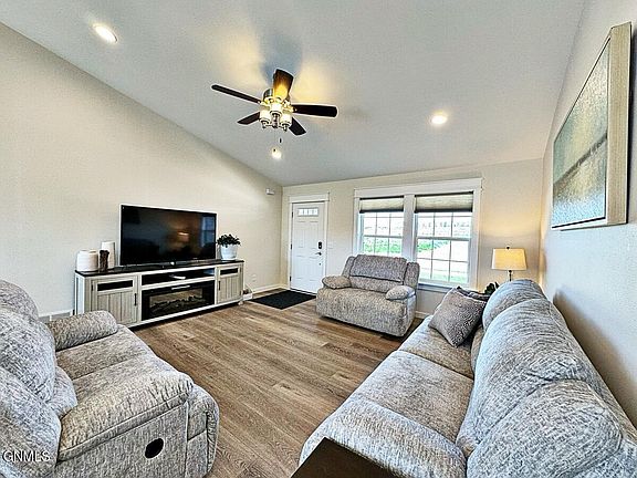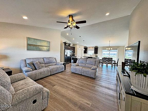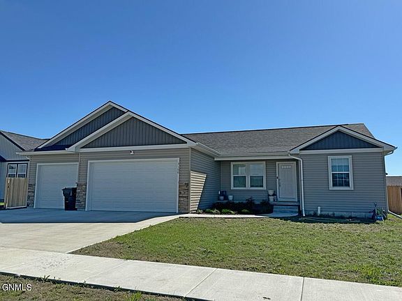 Nearly New! This 3 bed 2 bath home was completed fall 2023. 3 bed, 2 baths with full unfinished basement for future expansion with egress windows and roughed in plumbing for additional bath. Warm neutral colors, quartz countertops, island kitchen with two pantry spaces for lots of storage. Main floor mud/laundry room off back entrance. Vaulted ceilings over great room area and box tray ceiling in principal bedroom. Principal bath features dual sinks, linen tower next to the vanity, generously sized tile shower with rain glass shower doors, built in closet organizer. Landscaping has started! You will find a fully fenced back yard, underground sprinklers front and back as well as a pretty flower bed off the front walkway. Garage is a triple attached 814 sq ft - hard to find in town! 24.5/27.5 deep x 34 wide. And it's insulated and heated! Sale price includes all kitchen appliances, as well as top of the line front load LG washer and dryer on pedestals and custom window treatments. Quick move in is possible. Call your favorite agent today.