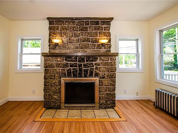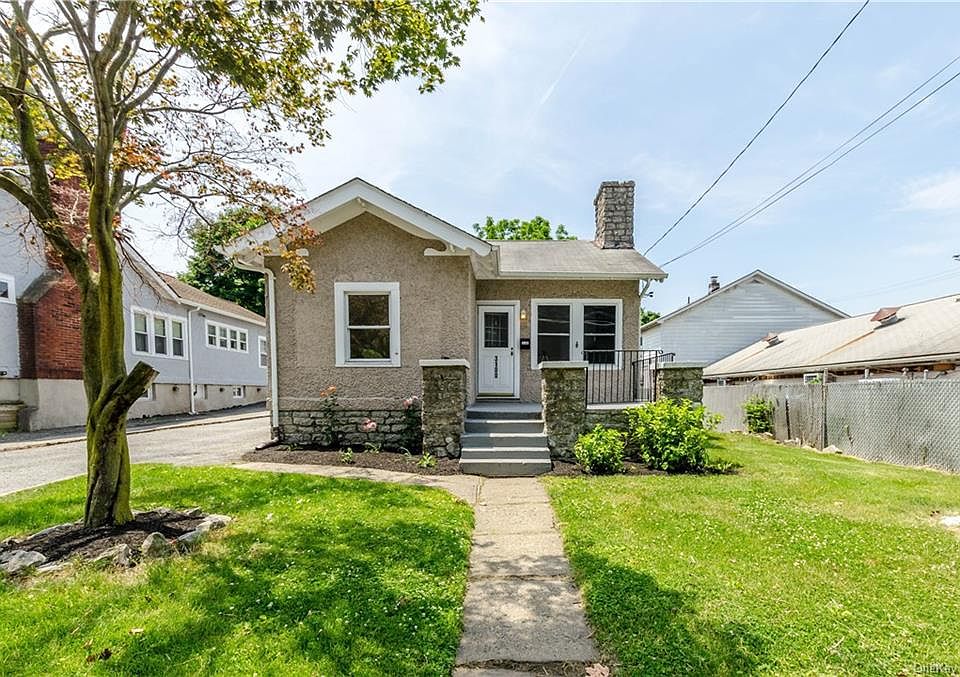 Great curb appeal, stucco exterior with adorable front walk up patio! In close proximity to commuter routes & Metro North RR. This home is a 3br, 1ba on a flat usable lot with a detached 2 car garage. Bring your DIY ideas and make this your own. One level living; living room with stone fireplace, formal dining room, large eat in kitchen with slider to rear, master bedroom, second bedroom full bath and 3rd bedroom. Walk up stairs to attic - great for storage or possibility to finish. Interior & exterior access to basement is unfinished with utilities & storage. New boiler. Natural gas, municipal water. Walk to public transportation, shops, houses of worship and parks!