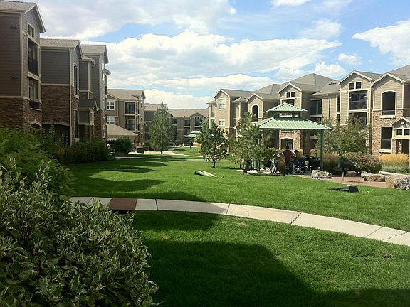 Beautiful first floor condo with 2 bed 2 bath, light and bright open floor plan. Master bedroom with private patio balcony, large walk in closet and attached master bath. 2nd balcony off the living room. Detached garage with electricity and oversized single car accommodations. Short walk to the pool, hot tub, workout room, clubhouse and park. Spacious, quiet condo with an open floor design and luxurious set-up! Cozy year round nights with a gas fireplace. Granite counter-tops and all stainless appliances to enjoy. Highlights include: *9 ft high ceilings *In-unit Washer and Dryer *Ample storage space *Central heating and A/C *Free access to community pool and a well-stocked gym *Playground right next to the building *King Soopers and other shops in close vicinity; Costco is 5 miles away *Next to Colorado National Golf Club in Vista Ridge *Minutes away from I-25 and 20/25 minute drive to Boulder/Denver/DIA