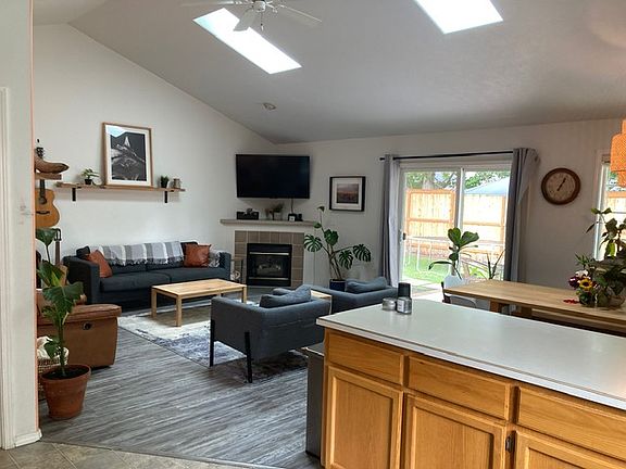 Wonderful 1-level 1478 sq. ft. home in quiet, friendly neighborhood. Vaulted ceilings with floor to ceiling windows. MBR with walk-in closet, office space and separate bathroom. Large enclosed back yard. Gas fireplace. Short walk to park, public transportation, etc. Recent upgrades include roofing, painting, laminate flooring, new appliances and new fencing. Off street parking with RV storage. Month to month with 1 year minimum commitment. Last month's rent payable initially over 3 months. Renter is responsible for all utilities. Subletting is not allowed. Renter's insurance is required. Compliance with local HOA guidelines is required.