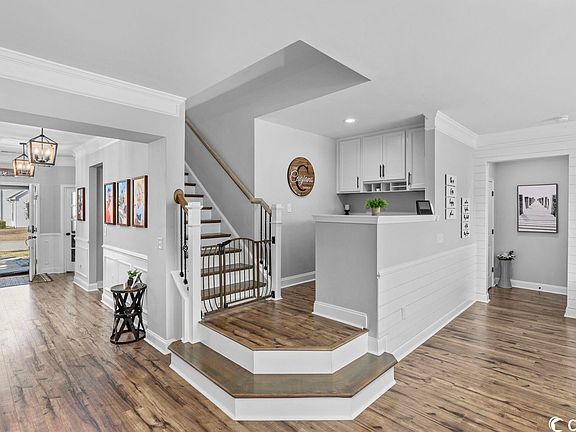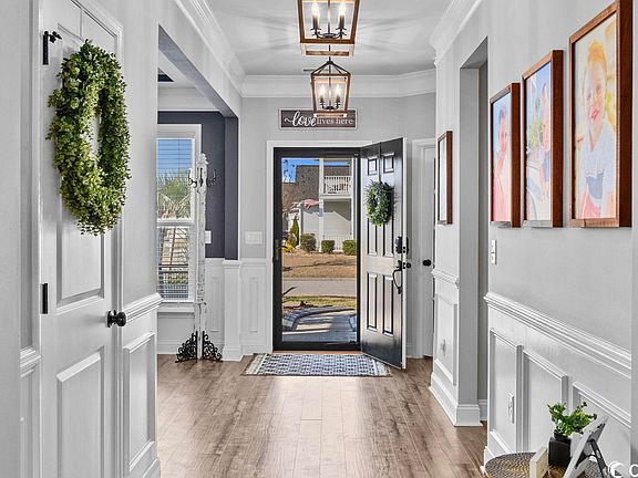 Welcome home to this beautifully decorated, like-new 4 bedroom 3.5 bathroom home in Carolina Forest! This home sits on a corner lot and has lots of curb appeal with well-maintained landscaping, irrigation and an inviting covered front porch. Upon entering through the foyer, guests are greeted by the formal dining room, a private office that could easily be converted into a fifth bedroom, laundry room equipped with cabinets, half bath, and drop zone. The open floor plan features a gourmet kitchen with a working island, granite countertops, stainless appliances, and updated lighting, hardware, fans and crown molding. The home was recently painted and shiplap walls were installed in both the kitchen and living areas. The first floor owner's suite has a walk-in closet, and bathroom with a walk-in tiled shower and granite countertops. Also located on the first level are 12' glass sliding doors which lead to the screened-in porch and backyard that was recently fenced. A spacious loft area and the three other bedrooms all with walk-in closets and two full-sized bathrooms are located on the second floor. The oversized garage and attic spaces allow for plenty of storage. Berkshire Forest is a highly desirable community because of its proximity to the beach, award-winning schools, medical facilities, shopping and entertainment as well as all of its resort-style amenities: pools, lazy river, hot tub, splash pad, clubhouse, fitness center, tennis, bocce ball, pickleball, basketball, 32 acre "Silver Lake" walk trails and a Lifestyle Director with events/activities calendar monthly. An Atlantica oceanfront beach membership is also included with HOA dues.