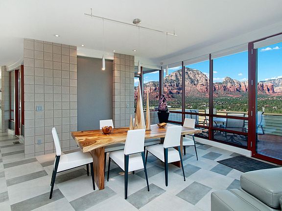 Sedona's Ultimate Iconic Contemporary Home has returned to the market in a vastly improved and stunning form calculated to match its spectacular panoramic views from nearly every window & expansive wrap-around deck. The Design Group's classic rendition of Frank Lloyd Wright's Modern Architectural Style made a major splash when it was first constructed by in 1992. Since then it has been continually updated & the current owners have out-done themselves in making it a superb, feels-like-new showplace that will thrill the most discerning buyer.