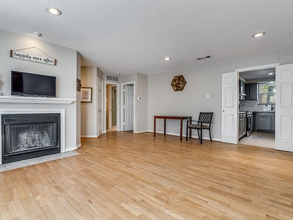 Bright and Updated 1 bedroom 1.5 bath First-Floor Condo for Lease! Welcome to this light and open condo featuring hardwood floors in the living and dining areas featuring a cozy brick fireplace. The freshly updated kitchen offers stainless steel appliances, sleek countertops with refrigerator included. Powder bath provides convenience for guests and additional storage. The private bedroom includes an en suite bath with a walk-in shower and a walk-in closet. Enjoy your own private patio right off the bedroom, perfect for relaxing with your morning coffee or just enjoying some fresh air. The community offers great amenities including a swimming pool, jacuzzi, and outdoor sitting area with a pergola and TVs. A comfortable, convenient place to call home! Tenant responsible for all utilities and renters insurance.