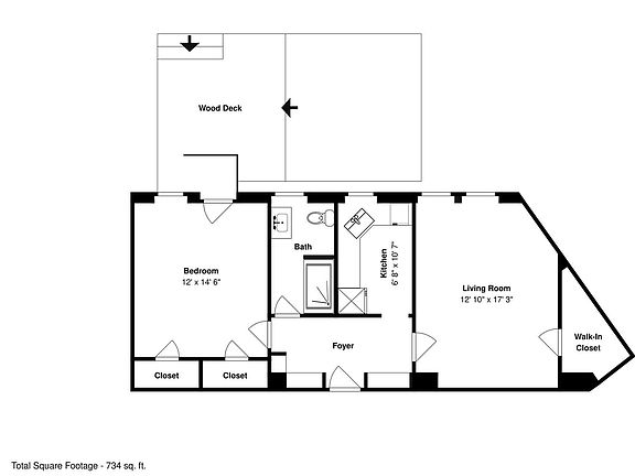 - Total interior livable area: 734 sqft