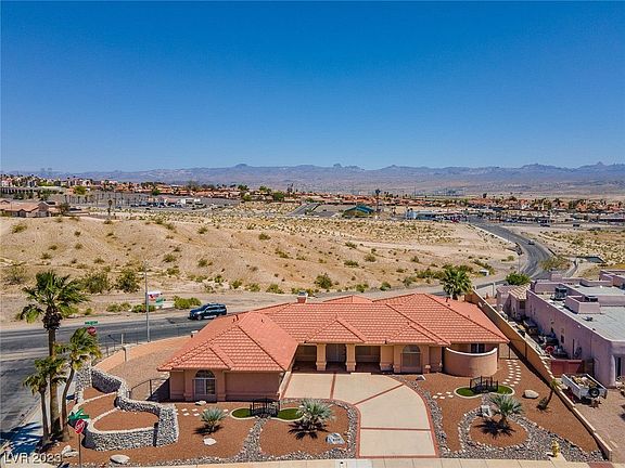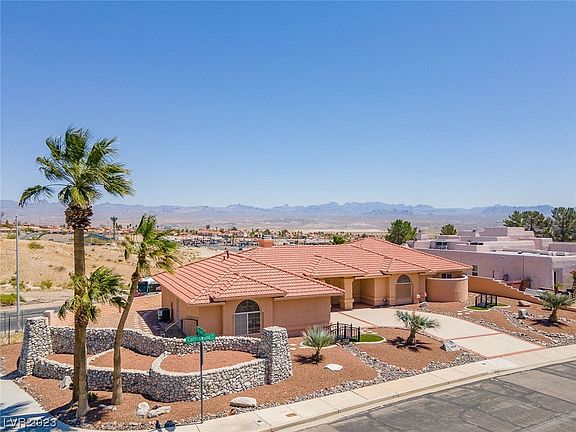CUSTOM HOME in Laughlin's El Mirage Estates. These properties rarely come up for sale. Truly a masterpiece, one of a kind property! This 3 bedroom 2 bathroom one level sprawling ranch style home was built in 1991. Featuring over 2390 sq ft of interior living area. This home has all the room for your most prized possessions. Even room for a pool! Enter through the tiled entry which leads to a great room complete with fireplace and custom display niches. This unique design features an arched passthrough from the kitchen to formal dining room "T" shaped seated breakfast/work space island, light oak cabinetry and high vaulted ceilings. Master suite retreat is fit for a king as it occupies the south end of the residence and features a walk in closet, private breezeway off of bathroom, separate tub & shower. Guest bedrooms are located at the other end of this flowing split floor plan. 2 car garage. The rear yard patio has panoramic views of the city lights and surrounding mountains.