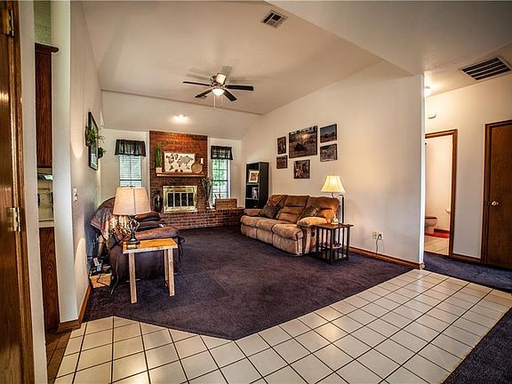 As you drive up to the house, you'll immediately notice the beautiful landscaping that gives this attractive home great curb appeal. A masonry fireplace adds a cozy touch to the spacious living area. An adjoining room can be an office, formal dining area, or a play area for the kids. An abundance of counter space and recently refinished cabinets make this kitchen a cook's delight . The breakfast bar allows for extra seating in addition to the breakfast nook. The Master Bedroom has a window seat where you can curl up w/a good book or look out over the beautiful big backyard. You'll find double vanities, whirlpool tub, separate shower & nice sized walk-in closets in the Master Bathroom. On the other side of the home, there are 2 secondary bedrooms & a roomy second bathroom. Recent updates include the roof, hot water heater, kitchen stove, garbage disposal, ceiling fans, light fixtures, hardware, garage door opener, interior and exterior paint, and a front and backyard sprinkler system.