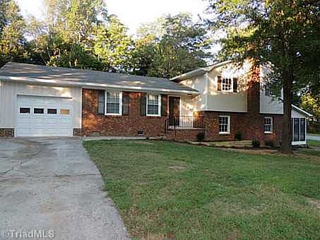 Beautiful & spacious N High Point home, ready to move into & enjoy! Lg. living room feat. arched doorways, hardwood flooring & great natural light! Lovely kitchen w/ new appliances, granite counter tops & updated lighting. Spacious dining area off kitchen! All bathrooms incl new vanities & tile flooring! Large Master bed & bath w/beautifully tiled walk-in shower & flooring! Lower level feat. additn'l bedroom, full bath & HUGE den w/fireplace! Large screened in porch! New roof & A/C! Nice lot! Must see!