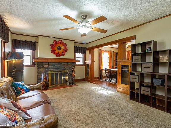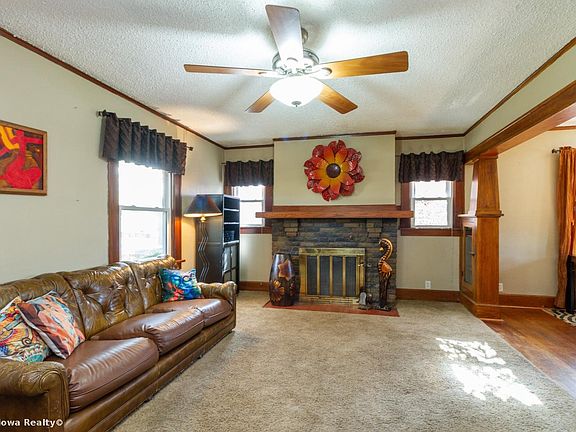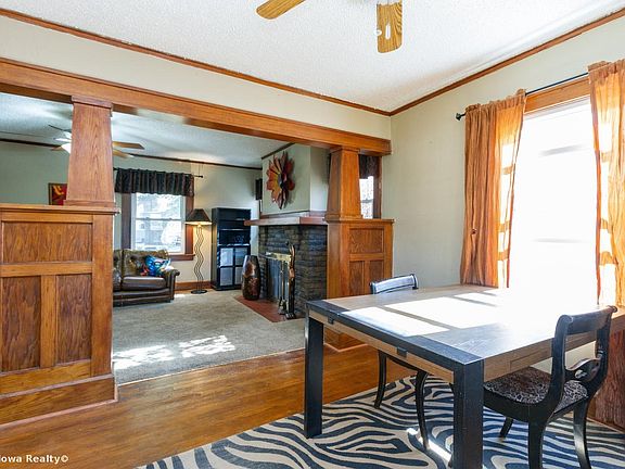 Charming wood work throughout this 2 bedroom home just west of Grand View University. Wood burning fireplace, beautiful colonnades, dining room, efficient kitchen with gas stove and hardwood floors throughout the first floor. Updated windows. Basement has rec room finish in one area with lots of storage. Wood fencing and black fencing curves around the back yard with nice patio area and one car detached garage. All appliances included. NFC financing available.