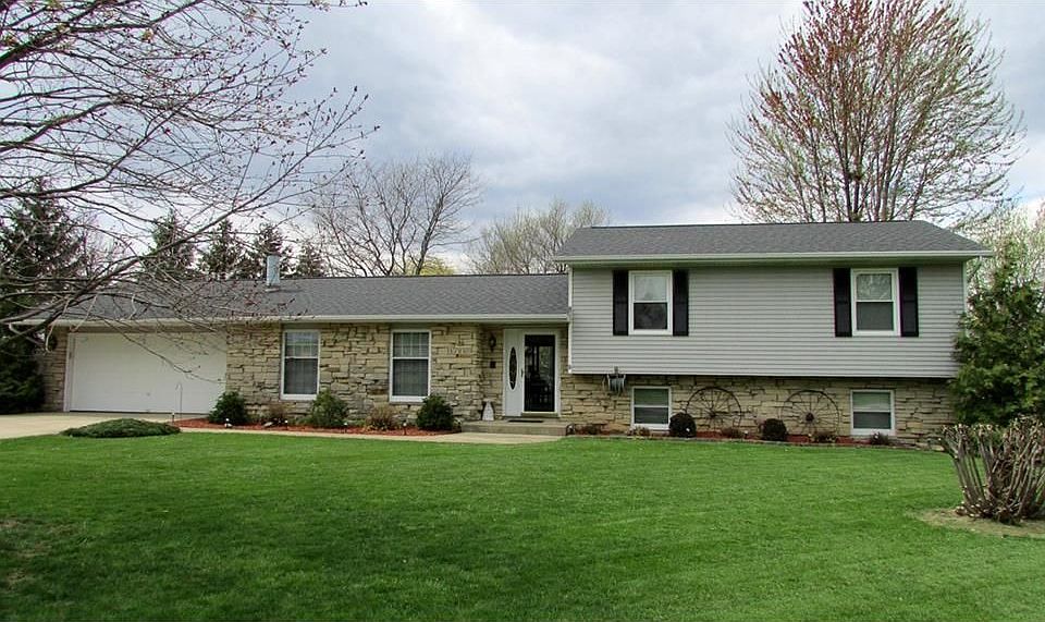 Lovely and well maintained home on beautiful 1 acre lot just waiting for a new owner. Huge kitchen with many cabinets, a built-in roll top desk, newer heated tile flooring, a breakfast bar, and all the appliances. Kitchen and dining room combination. Large living room featuring stone gas fireplace with built-in cabinets and shelves and entry way with ceramic tile flooring. New oak woodwork on main floor. Main bath features a large vanity and whirlpool tub. Updated master bath off large master bedroom. Lower level has a walkout rec room, bath, and private den. Huge deck with Pergola. Well landscaped yard. Close to Rockwell.