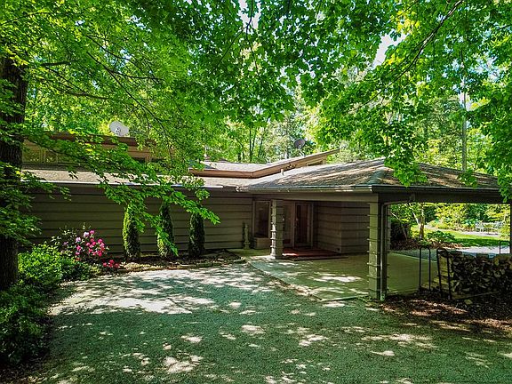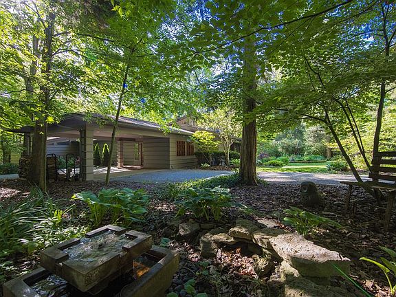 Dombar Mstrpiece,nestled 0n 15 acres 4bdrm3.5 updtd BA w/ sig color radiant heat cement flrs. Cstm shutters Gathering Spacew/ B/I seating,shelving &full wall Stone Gas FP 4 sets-French Drs let natural light to flood spaces. Entertainr's Kit keeps w/ Period upgrd w/ Granite,Wolf,Sub-Zero Mid-Century hallway of bookcases pantry,lndry 2-addtl Bdrms-shelving,desks & J/J Bath & also1/2 bath Dual Master Suites have Gas FP, Full BA,Nice Closets& access to screened deck/htub overlooking sanctuary.