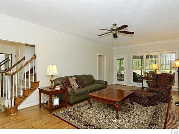 Almost 2 Wooded Ac lot w/Custom Home in Subdv just outside Apex. Hdwds 1st Fl- Open Family Rm has LP Gas logs/masonry FP, Opens to HUGE Scr. Porch and Deck! Formal Dining w/Trim and Renov.Kit w/ Tile,solid surface counter/new cab/tile backspl. Island,Big Pantry/Utility dwnst..Master Hi ceilings-WI closet, dual vaniety, tile, whirlpl, sep shower,Oversize Garage, xtra strg bldg