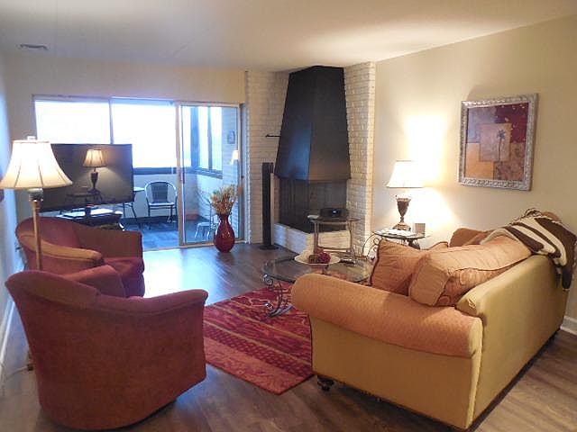 Lovely updated home with 2 bedrooms, 2 full bathrooms, living room, dining area, kitchen, 3 season porch, fireplace, underground parking, all utilities but electric are included in dues (internet, water, trash, gas, lawn care and snow removal, furnace filters), and laundry on every floor. The building features secured entry, onsite building maintenance and office staff, an indoor pool, sauna, hot tub, workout room, a large craft/hobby room, community room with big screen TV and billiards, library, gathering space with soft seating and fireplace, patio space for lounging and grilling, and flower gardens if you are so inclined. Great sense of community in this building of 70+ units. Owners have pride of ownership and it shows. If you are looking for a place to live where neighbors look out for each other, located in a vibrant area of the city of Des Moines, easy access to all parts of town - then this is the place for you.