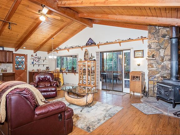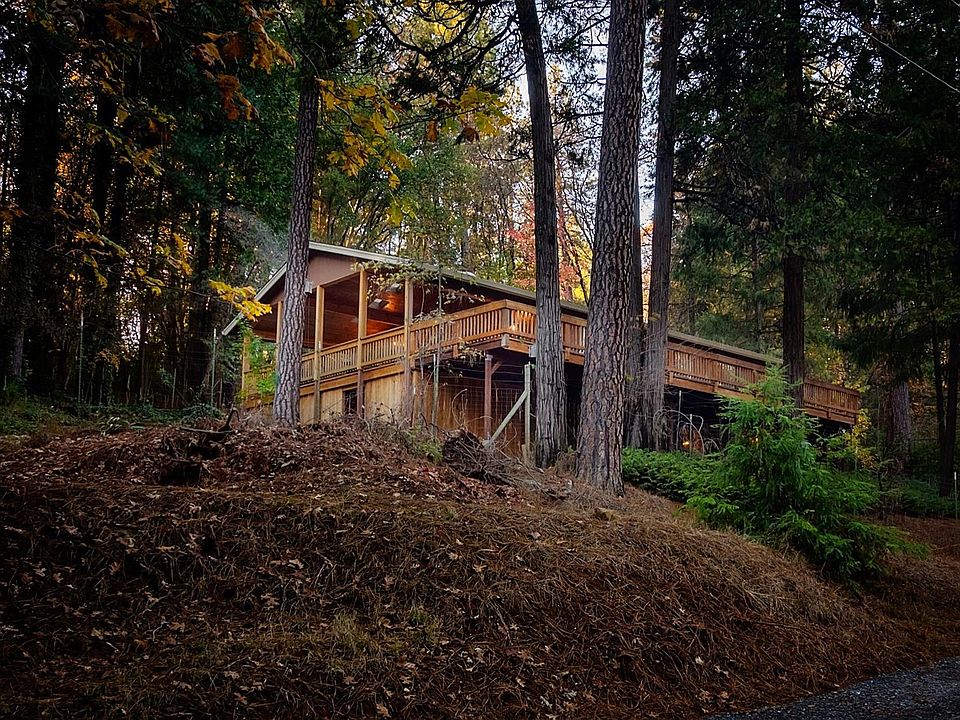 Charming home w/cozy guest quarters, tucked away on 5 lush acres. Vaulted wood ceilings & windows at every glance give this 2bed 2bath main home a spacious, open feeling. Freshly remodeled kitchen equipped w/new appliances opens to a wraparound deck & covered dining area. Lower level is a great space for game room or workshop. The quaint 1 bdrm guest house is just a few steps away & completely self-sufficient. Not a neighbor in sight yet only 1 mile from town.