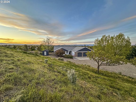 This incredibly unique custom home provides in town, country-style living with unobstructed, panoramic views of the Baker Valley and surrounding mountains. Located near the edge of town on a private road and a short distance from the Quail Ridge Golf Course, this home provides a rare Baker City living experience. Plenty of parking and a three-car garage in the front of the house combined with a large deck and patio space out back add to the originality of this home. Extensive, comfortable outside living space offer expansive views of the best that Northeast Oregon has to offer. Inside, large windows peer out at the beautiful Baker Valley and flood the entire house with natural light from sunrise to sunset every day. At night, the lights of Baker City create a backdrop entirely unique to this location. This home is all set up of one-level living with minimal steps and a great open concept layout in the main living space. A large master suite and good sized bedrooms add to the extras that this home offers. Come see all that this incredible home has to offer and prepare to be amazed!