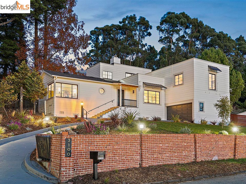 This stately, renovated 1937 traditional on a double lot has a lot to offer! Original oak floors flow through a split-level floor plan, maximizing utility & privacy while providing the footprint for memorable entertaining. Step through a gracious entryway with exposed beams. Glide through one of many arched passageways into a formal living room with sleek fireplace or into the inviting dining room, both with multi-pane windows that perfectly frame bay & city views. The heart of this home is the open concept kitchen with sleek, designer-inspired touches, an island with bar seating, & stainless steel appliances. An attached eating area leads to backyard access. Upstairs, find three bright and sunny bedrooms, the topmost of which features a separate play area & enviable balcony for soaking up sweeping views across the bay. The second bedroom overlooks the expensive backyard. The hall bath features designer tile work, a shower over bath, & other high-end touches. The primary bedroom features a walk-in closet, en-suite bathroom with step-in shower & more views of the Bay. Downstairs sits a family room retreat with direct access to the backyard, laundry & garage. Outside, find multiple outbuildings, stone paths and patios for entertaining and alfresco dining, and more bay views!
