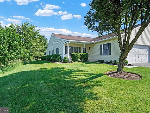 Carefree lifestyle in this 2 bedroom 2 bath End Unit that backs to open space. Covered front and back porches. Electric Awning that can cover the patio. Privacy fence between your neighbor. Family Room with corner Gas Fireplace. Ceramic in Kitchen and hall bath. Laminate wood floors in Dining Room and hallway. Spacious Primary Bedroom with double closets and full bath. All appliances are included. Garage offers storage cabinets, a sink and gas space heater. Hot water heater is I yr young. Location is close to restaurants, shopping, RT30 and I83. Schedule your showing today.