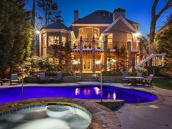 Timeless Brookhaven 4-side brick estate home situated on a half-acre private lot w/ gorgeous pool & landscaping. Entrance foyer flanked by formal study & dining room opens to a 2-story grand room w/ wall of windows that views the backyard. Kitchen can accommodate chefs of all levels & opens directly to your keeping room. Full master suite on main. Finished terrace level w/ custom theatre, full bar, billiard room, wine cellar, rec room, guest suite & pool bath. Laundry rms on all 3 floors. Upstairs offers second master's suite + guest ste + 2 bedrms w/ jack & jill bath.