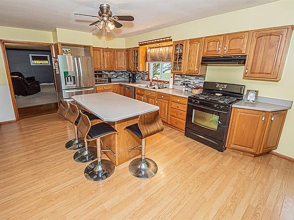 3 Bedroom Rach on large lot located in Newfane School District. Spacious country style eat in kitchen with center island, newer counters, cabinets and backsplash with stainless steel appliances. Slider out to deck overlooking a private wooded yard. Livingroom with gas fireplace. Full Finished Basement with built in bar and half bath.