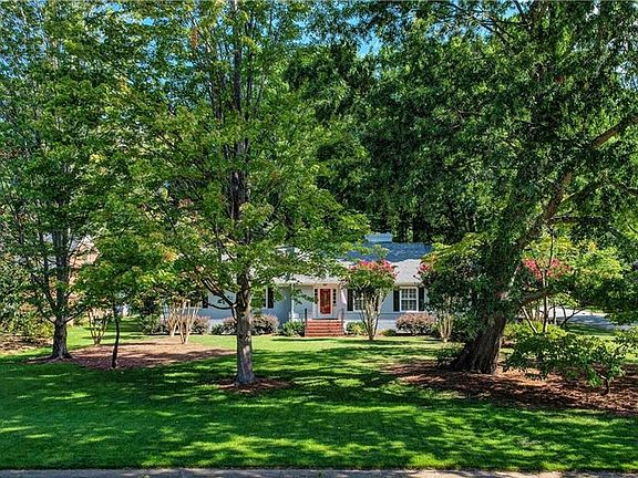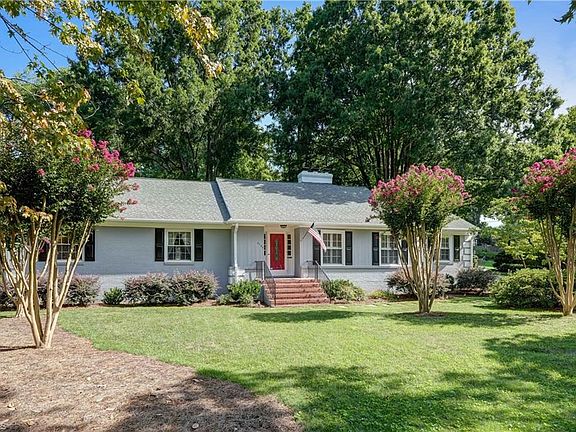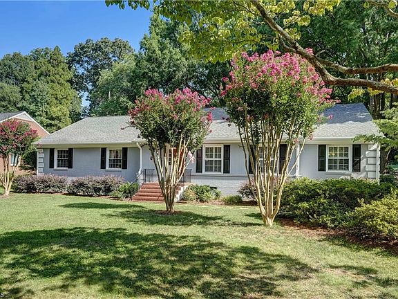 Classic Ranch on corner lot of one of the most desirable streets in Starmount Forest! Home features generous-sized rooms with natural light, hardwood floors, and gas fireplace in den. Main floor storage plus a walk-up attic with permanent steps that runs the entire length of the house. Large kitchen offers exciting opportunity to customize and tailor fit the space to meet the new owners' preferences. Kitchen and den open to sun porch that is heated and cooled but not included in the sq footage. Wide hallway leads to bedrooms, fully renovated hall bathroom, and newly constructed and conveniently located laundry closet. Primary en-suite bedroom with completely remodeled bath and walk-in closet. Carport with attached overhead and side storage spaces. Mature landscaping in manicured backyard with string lights over a fire pit, creating a lovely space for entertaining. Walkable distance to some of Greensboro's loveliest parks and to the popular Shops at Friendly Center. Appts begin 9/10/22.