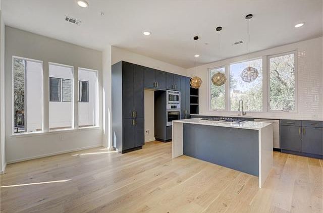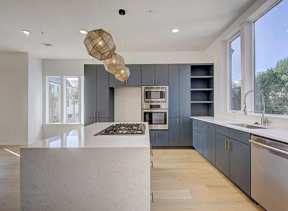 A beautiful 2 bdrm /4 bath contemporary corner unit w/ 2 car garage move-in ready at The LAAN~A bright, open living & kitchen w/ many windows gives the space an open & sophisticated look~ Features include designer finishes w/ wood flooring, beautiful kitchen w/ quartz counters & waterfall island & Bosch SS appliances~Upstairs master bdrm w/ lrg walk-in closet & bath w/ dbl. sinks & walk-in shower w/ seat~Addl. bdrm w/ ensuite bath located up~Expansive covered patio & numerous property amenities to enjoy!