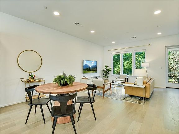 Text OWNER - 30 min notice, then GO. Beautiful, newly constructed, modern condo is barely lived-in. Lives like a Single Family Home. Centrally located in 78704 w/ individual fenced yard, covered patio, +1 car attached garage & car port. The LAAN includes designer finishes, Bosch SS appliances, wood flooring, quartz waterfall counters, & much more. The community amenities include a pool, outdoor lounge w/ BBQ grill & dog run. Unit includes nest, washer/dryer, SS refrigerator. Security system owned.