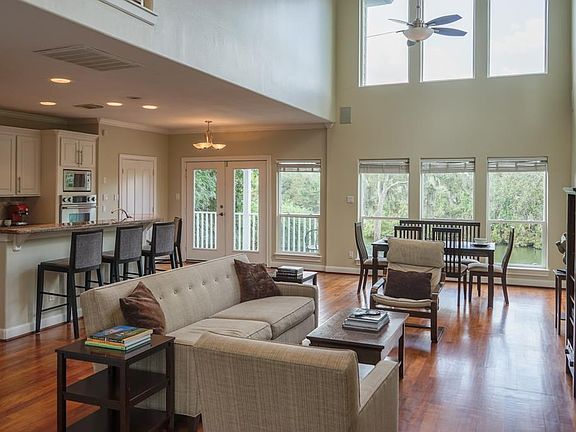 ENJOY YOUR PRIVATE RETREAT in this sophisticated waterfront 4/3/4 with a stone fire pit & slate decked pool/spa. This renovated open floor plan has high ceilings, teak floors throughout, stainless stair railing, custom bookshelves, & granite in all baths.The Chef's Kitchen/Bar with granite, upgraded stainless appliances, and custom cabinets opens to the living room with expansive water views. Master suite is spa like with dbl sinks & jet tub. Natural Wooded Privacy in the Heart of the City.