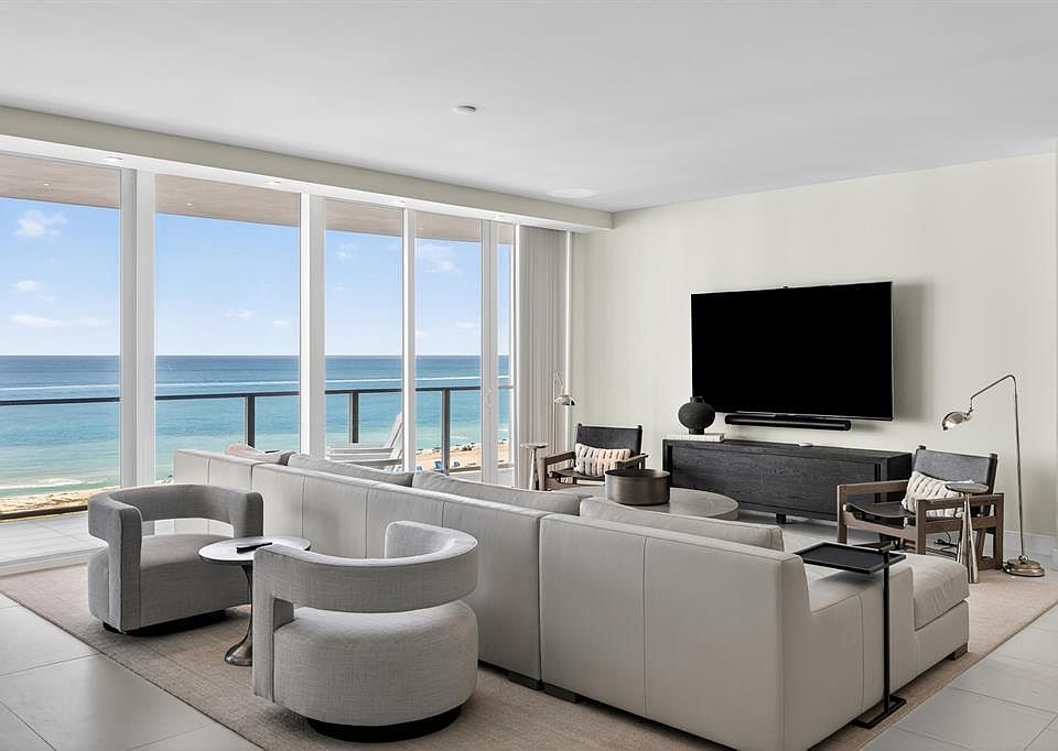 Modern complex built in 2023. Spacious, high-end condo with spectacular ocean views from every room. Large terrace, laundry room, Miele appliances. Sleeps up to 7 guests, the den features a high-quality sleeper sofa for extra comfort. Valet parking, residents pool, hot tub, community room, 100,000-square-foot spa facility, gym, restaurants, beach with chairs and umbrellas, towel service, all available for your use. Available ANNUAL and SEASONAL. Call for seasonal prices.