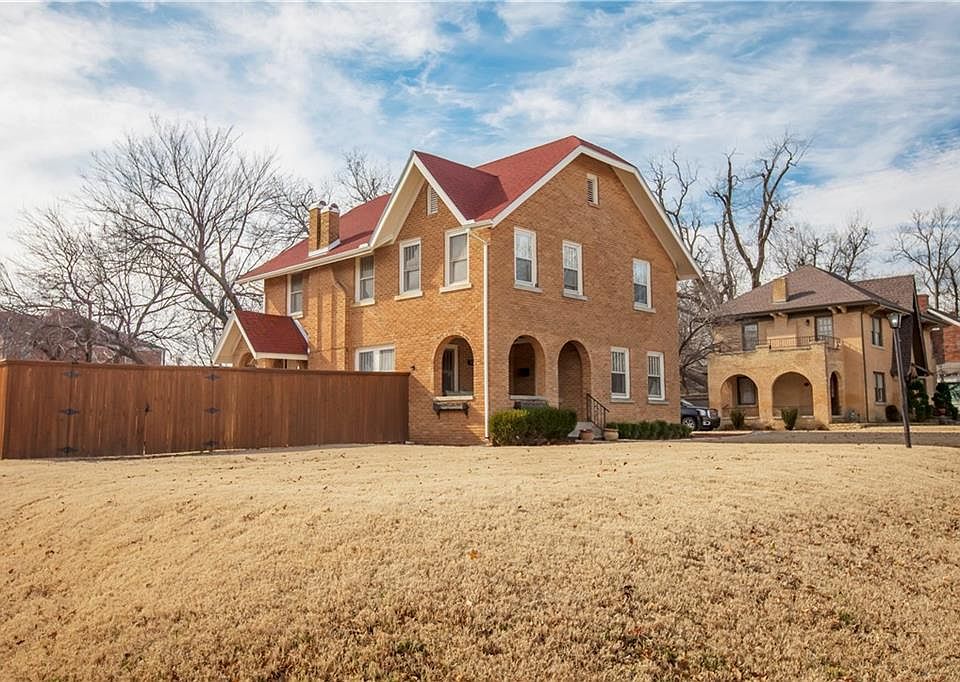 This impressive home sits atop one of Historic Linwood Place's most well-appointed and highly desired lots, directly overlooking Wayman's Park. The stately curb-appeal welcomes you to the cozy front porch, and just inside, a warm and inviting living room awaits. This home possesses gorgeous original fireplaces and hardwood flooring, and offers amazing space - complimented by a functional flow. The original steel kitchen cabinets have been meticulously restored to their former glory, and there is plenty of prep space on the beautiful butcher block counters. There is also a large walk-in pantry, convenient bar seating, adorable breakfast nook, and downstairs powder bath. The striking staircase leads you to the three bedrooms. The master offers an adjoining sitting room, providing extra space for an office or nursery. Charm and character abound everywhere you look! The outdoor living space is an oasis with a secluded, resort-like feel. Don't miss your chance to see this historic beauty!