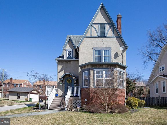 Beautifully updated and maintained, this English Village, Tudor style colonial with a front porch located on a corner lot with 2 car garage and fully fenced yard. A gorgeous home with style and character includes Arched doorways, 9ft ceilings & inlaid hardwood floors, Light filled Sunroom with 5 large bay/bowed typed windows, Renovated kitchen with cherry cabinets, Living room with decorative fireplace, Separate dining room with built ins and molding. Large master bedroom with built in closets, upstairs bath has custom double vessel sink. Washer/dryer located on bedroom level and in basement. Lower level has finished family room and full bath. Newer roof, HVAC, sewer and insulation. Rear Deck overlooking the back yard. Garage door opener, walk up attic. Lovely totally fenced rear yard.