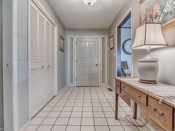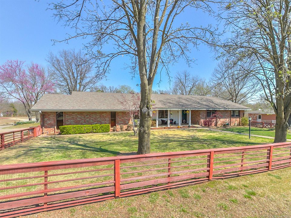 A Keeper! Wonderful covered front porch and even larger covered back patio to soak in the beautiful wooded views. Engineered wood floors in large, open living area. Lovely corner fireplace and loads of built-in shelving. Granite island in kitchen, abundance of cabinets, pantry, newer stainless appliances. Breakfast nook with bay window overlooks back yard. Roomy utility with exterior door. Oversized 2 car garage with 2 tool rooms and shelving. Extra mud room near kitchen. Add'l parking, newer roof!