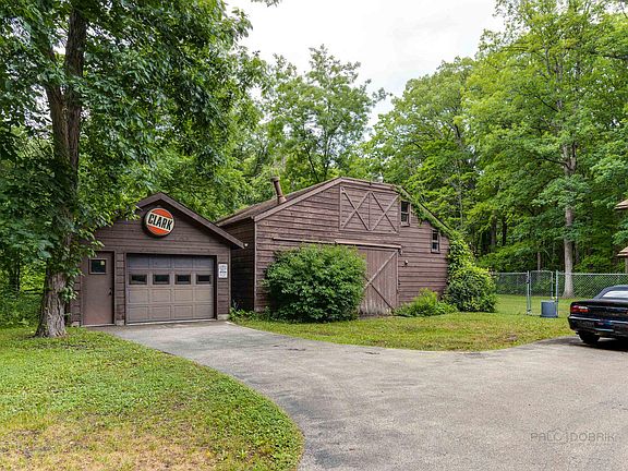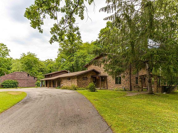 Gorgeous 2 and a half acre lot with massive circular driveway surrounded by luscious trees, perfect for privacy!! Five car garage home!! Barn with two stalls for horses to live on the property and a detached garage for extra space. Enter into this lovely two story brick home through your capturing pergola leading to the front door. As soon as you enter you will fall in love with home's bright and airy voluminous layout ideal for everyday living and entertaining. Step down into your eye catching living room highlighting stunning floor to ceiling multi-sided brick fireplace that's shared with the family room. Entertain in your charming dining room perfect for every gathering. Make memories in your gourmet kitchen boasting granite countertops, tile backsplash, Viking oven/range and range hood, an abundance of cabinetry, and eating area with outdoor access to backyard deck. Spend quality time in exquisite family room with access to beautiful and open sunroom. Laundry room, half bath, and spacious office complete the first level. Retreat to your master bedroom presenting private balcony, ensuite, and connected second bedroom that can be used as a workout room, second office, or game room. Two additional bedrooms with walk in closets, and a full bath with a double sink complete the second level. Escape to your large yard with expansive deck and enclosed private sauna perfect for outdoor entertainment! This home wont be on the market long, come see your future home!!!