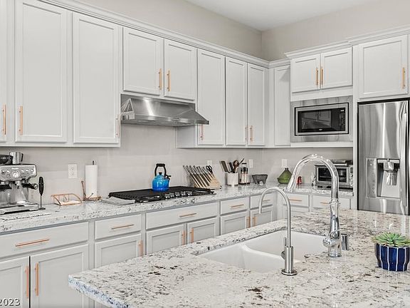 MARVELOUS 4 bedroom / 3 bathroom home on massive lot in Inspirada!!! Unique statement fireplace upon entry into the great room that includes under-mounted lighting. Crisp kitchen includes large island, copper pendant lights, granite counter tops, stainless steel appliances, and other copper accents. Primary bedroom stands out with custom-built headboard and entertainment center. Backyard is perfect for entertaining with pavers, covered patio, easily maintained synthetic grass, and multiple seating areas. The Inspirada community association features loads of recreational activities; park, jogging, community pool, and so much more! Must see!!!