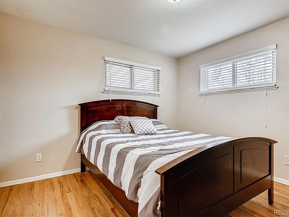 Updated 5 Bedroom 2 Bath BRICK RANCH home with a HUGE backyard on a corner lot. Hardwood flooring throughout the main level and beautiful Tile in Kitchen and Bathroom. Kitchen includes Granite countertops and white cabinetry. This property has RV Parking with large gated carport and HUGE potential! The basement offers great flex space with a large bonus room and basement bedrooms with egress windows. Convenient location, close to Airport, Denver, Stapleton/Northfield, Fitzsimons, Children's Hospital, UCHealth Anschutz Medical Campus, Light Rail, parks, trails and shopping.