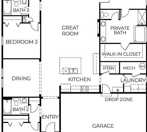 - Bath Off Primary, Dining Room, Walk-In Pantry