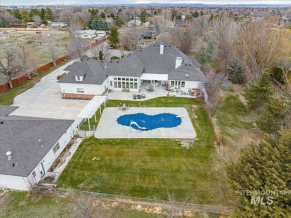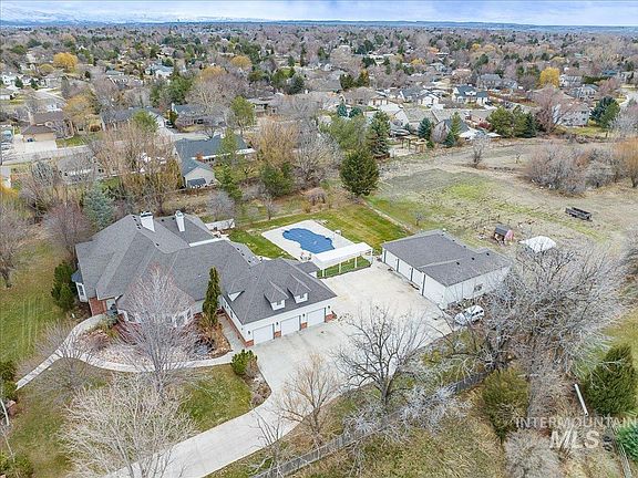 RARE FIND! Custom-built home on almost 6 acres in Boise! The beautiful home is within 15 minutes of downtown Boise & the airport! This home has a Boise address yet is in unincorporated Ada County meaning no city taxes and definitely no HOA fees! The vaulted ceilings & extra tall doors create a grand entrance into the home. The open-concept kitchen & great room are perfect for entertaining or if you want to get fancy, use the formal dining room! Enjoy your morning coffee in the expansive sunroom that features a wet bar, half bath, and a great view of the yard! Step outside for lunch on the patio overlooking the inground pool or jump in to cool off! The upstairs bonus room has a full bath with tons of additional storage space. Sneak away for some quiet time in the library with built-in shelves & a closet. Work from home in the office. The 2300 sqft shop includes 35ft RV bay with dump plus 6 additional bays & 1/2 bath. This is a one-of-a-kind property you must see for yourself!