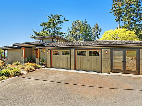 Frank Lloyd Wright inspired Three Tree Point custom craftsman! Full southern views of Puget Sound, Mt. Rainier, Maury Island, Vashon Island. One-level living possible; all rooms (except for crow's nest suite) on main level (with two steps down to master, living rooms). Custom features include abundant vg fir cabinetry, chandelier, stained glass, bar. Truly unique PNW home 2 car garage + shop. Guest suite on 2nd story w/ views. View deck, private dining patio. Made with TLC, a "Must See!"