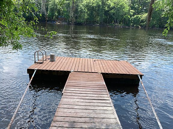 We had a beautiful river house on this Suwannee Riverfront property. It burned to the ground in 2018. It’s now a double lot with over 200’ of waterfront. It has a boat ramp, dock, pole barn, basketball court, sea wall with stairs and is landscaped. It has a well and septic and 60 amp electric panel. Lots of grass and trees. The water management district will no longer allow building on this part of river BUT this lot is grandfathered and ready for your house. It’s also ready for campers and boats.