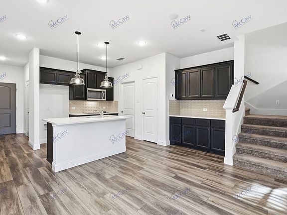 Witness the luxury of living in an exquisite townhome at the heart of Wylie. This appealing domicile presents a delightful array of 4 bedrooms and 2.5 bathrooms, complemented by an open concept design that accentuates its modernistic architecture. It captivates with an expansive family and kitchen area furnished with stainless steel appliances, granite countertops, and a generous kitchen island. Adjacent to these are the laundry and powder baths, conveniently placed for easy access. The townhome also proffers an upstairs owner's retreat that brims with natural light from its multiple broad windows, finished off with his and hers closets.