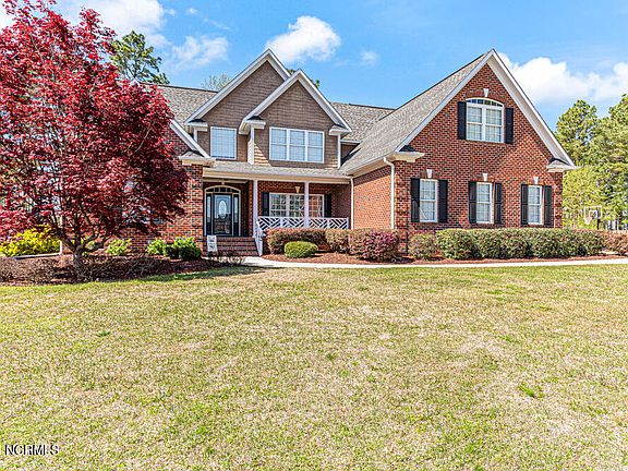 Experience the epitome of luxury living at this exquisite executive residence nestled within the prestigious gated golf community of Gates Four. Meticulously crafted by a premier builder, this custom masterpiece boasts 4 bedrooms, spacious bonus rooms, and a loft, providing the perfect blend of elegance and comfort for those with discerning tastes. As you step inside, you are greeted by a grand foyer with triple trey ceilings, extensive crown molding, and high ceilings, setting the stage for the architectural excellence that defines this home. The heart of the residence lies in the expansive gourmet kitchen, featuring a double oven, numerous cabinets, and a sizable island, catering to culinary enthusiasts and refined dining experiences. The luxurious owner's suite on the main level offers a serene retreat, complete with an updated master bath featuring a Victoria Albert soaking tub and walk-in shower, along with custom-built cabinets in the master closet. Modern conveniences such as an oversized 3 car garage, circulating hot water system, central vacuum, and sprinkler system enhance the comfort and efficiency of this home. Entertainment options abound with a second-floor media room/bonus room and additional spacious bedrooms. Outdoor living is embraced with a covered front porch, rear screened porch, and large patio, perfect for enjoying the tranquil surroundings. With a transferable golf membership at a discounted price and situated in the sought-after Jack Britt school district, this home offers not just a residence, but a lifestyle choice for those who appreciate privacy, security, and the finer things in life. Welcome to the pinnacle of luxury living at Gates Four, where sophistication and comfort converge to create a truly exceptional living experience.